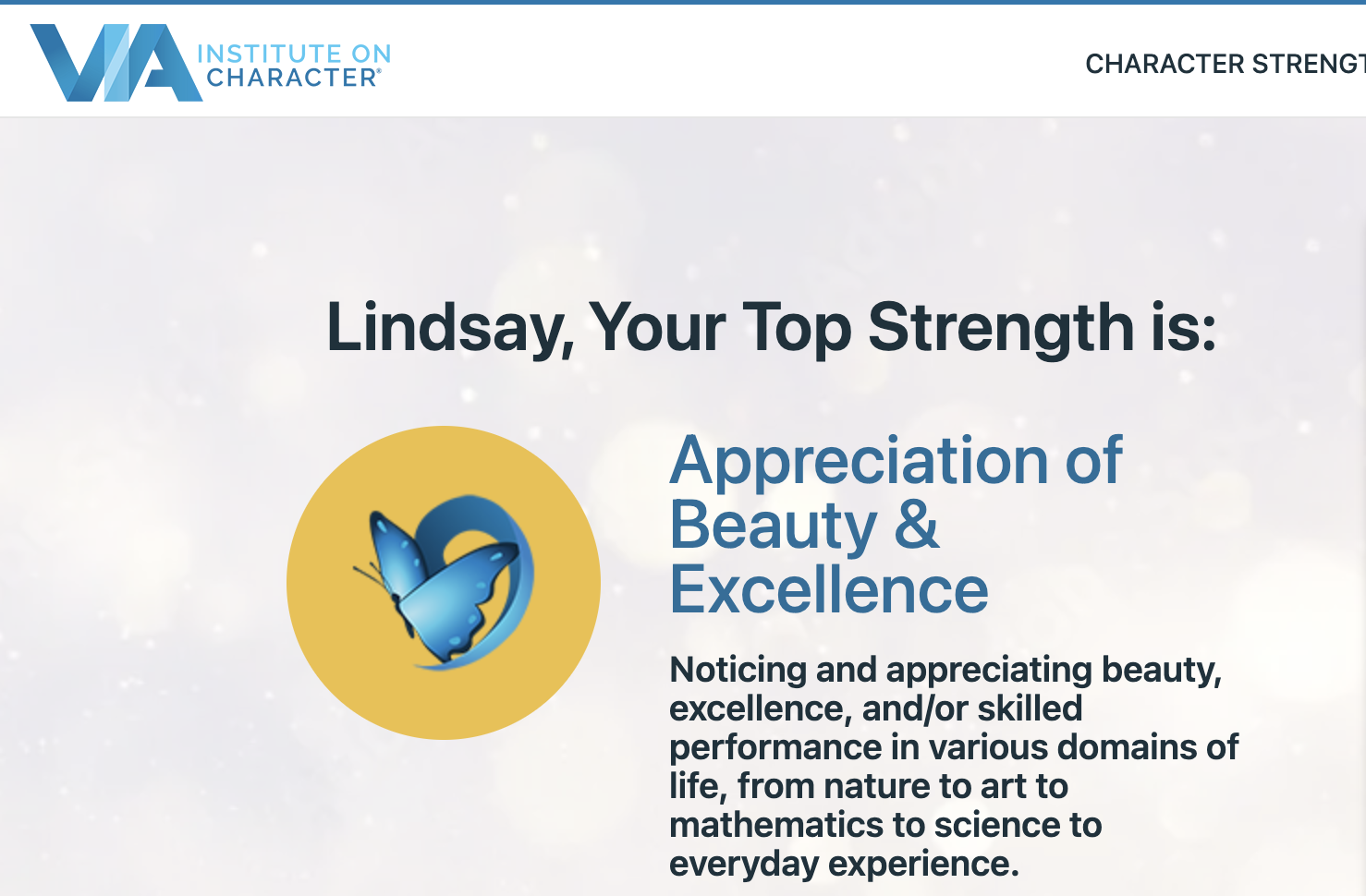 Receiving Appreciation of Beauty as my top strength gave me all the warm fuzzies. Seeing Self-Regulation as my 2017 top strength made me want to reach back in time and give that girl a hug. She was just doing so much back then and I can just feel that pressure while reading the self-regulation definition. I wish I was there to tell her that she didn’t need to do so much.