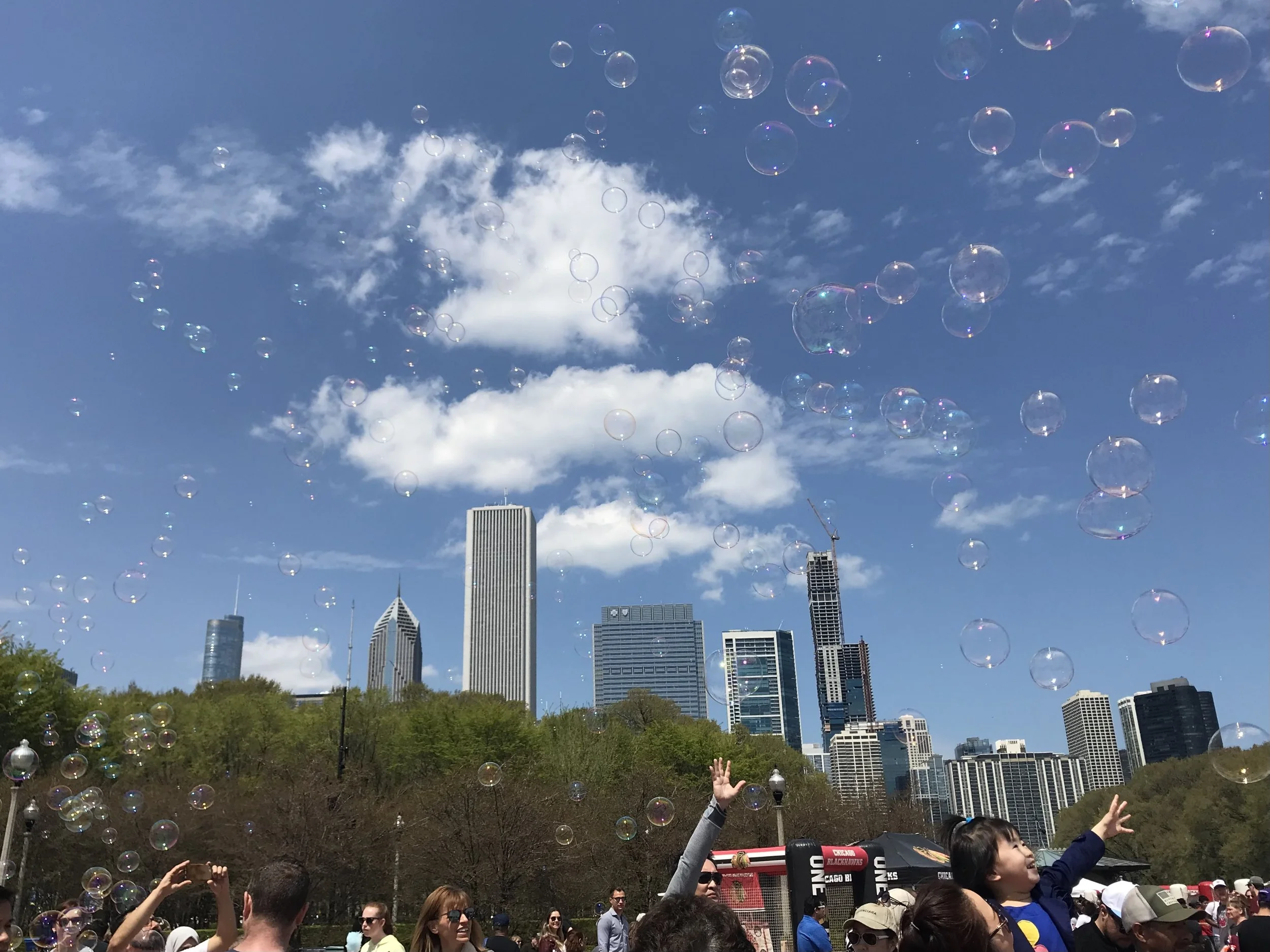 Grady has a story. An incredible, unbelievable story. In 2018, he jumped off our 15th floor balcony and onto a 7th floor patio AND SURVIVED. Sometimes we have moments in life that we know will provide an instant burst of gratitude anytime we think of it moving forward. That is how Grady’s presence from May 2018 through to the present has felt for me. When he jumped off our balcony, we actually didn’t realize it had happened for several hours (I’ll include full details of the story below). All of a sudden we couldn’t find the cat. It was a beautiful Sunday at the beginning of May, and Buckingham Foundation was having a special celebratory event where they turn on the fountain to signify the start of the warm seasons. Jim and I were panicked looking for the cat, and we also knew we had to get the kids out of the apartment. So I walked them up to Buckingham Fountain while Jim tried to figure out in desperation where our cat had gone. Standing at Buckingham Fountain, where everyone cheered when Tom Skilling flipped the switch to get the water to flow, I looked up to the sky, channeling whatever higher power is there for us, and I prayed. Please, I pleaded to the sky. Please. Please help us find our cat. If we find him, I will remember this place for the rest of my life. This moment. My feet on the ground. The clouds in the sky. The mist from the fountain. I will know that this world contains wonder and magic, and that here on this spot in front of this city as a witness, my prayer was answered. The following year, we returned to the event at Buckingham Fountain, and I took this picture from the spot where I had prayed the year before.