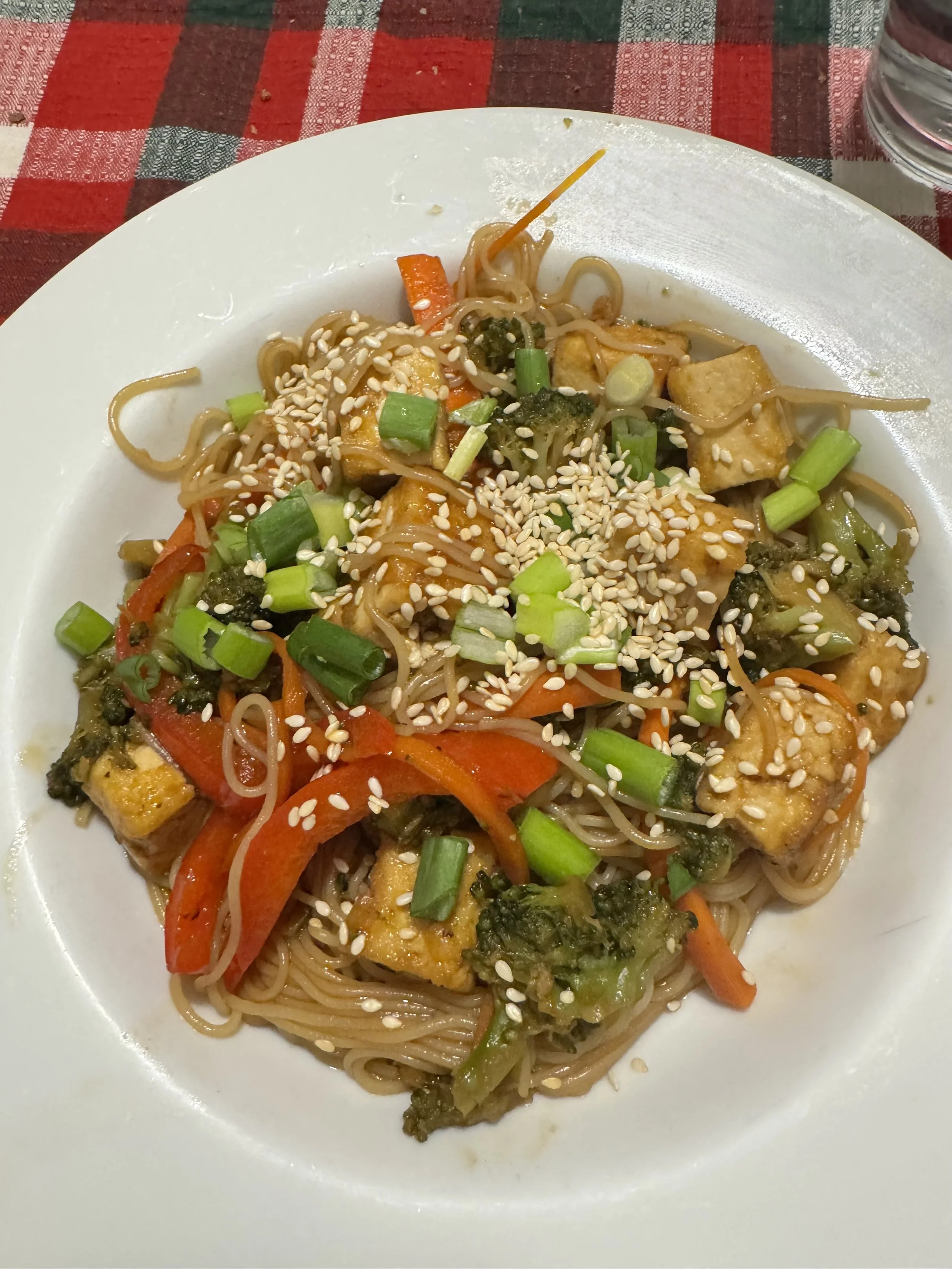 This is the dish I made during that evening over Christmas week- Sesame noodle veggie stir-fry (p. 146). It was soooo good and hit the spot. My kids gobbled it up too.