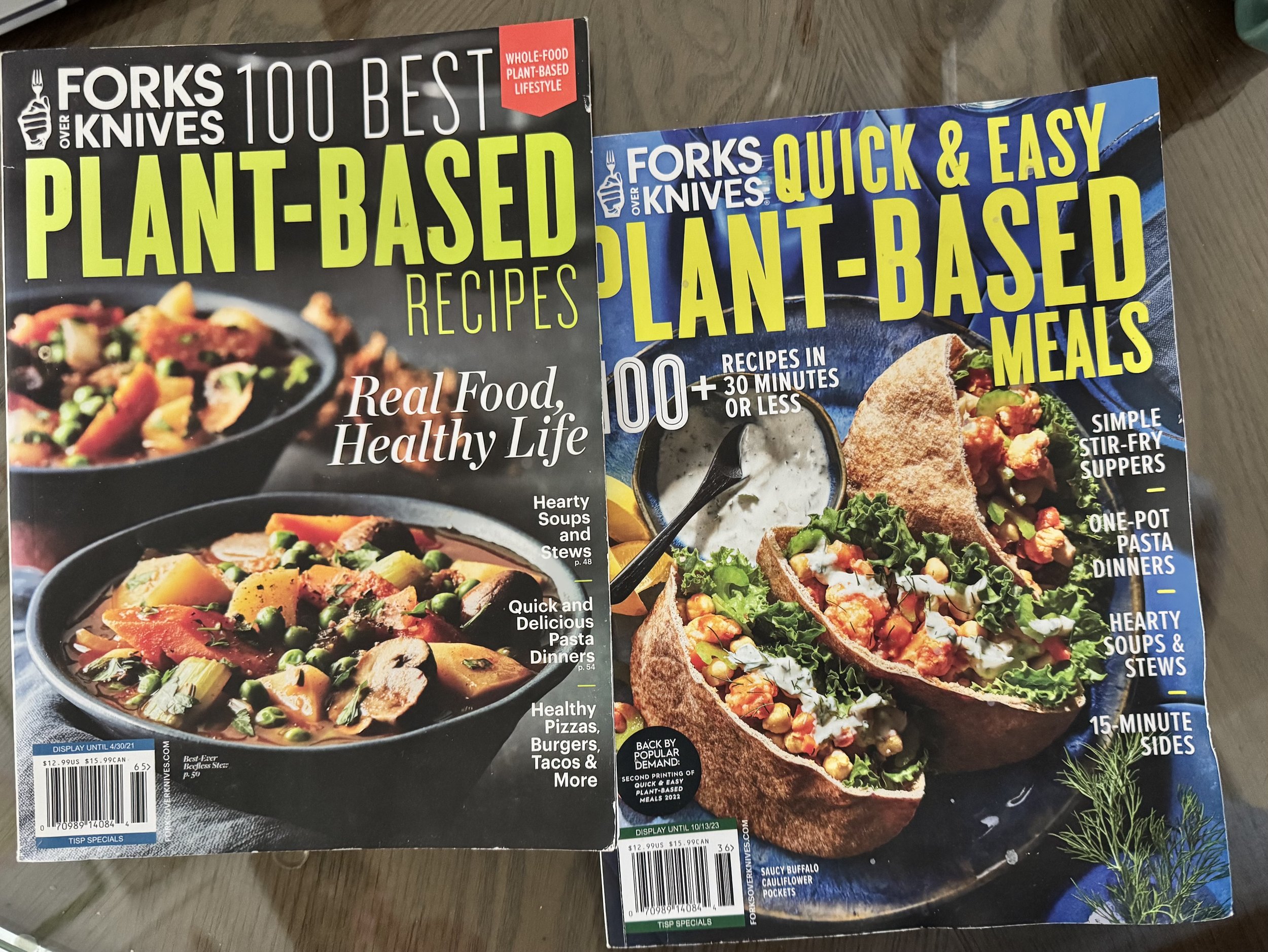 We have about four Forks Over Knives magazines that we’ve bought over time from the check out lane of Whole Foods over the years and this post is basically me giving these an enthusiastic plug. Each one has so many good recipes and are just as good as any cookbook (and much cheaper!). Since we have been focused on more salt-oil-sugar free eating for a couple months, I dipped back into them for my meal planning and have been so pleasantly satisfied (which- I knew they were good from when I’ve cooked out of them before… it’s more that my memory is a sieve and sometimes these options escape me!).